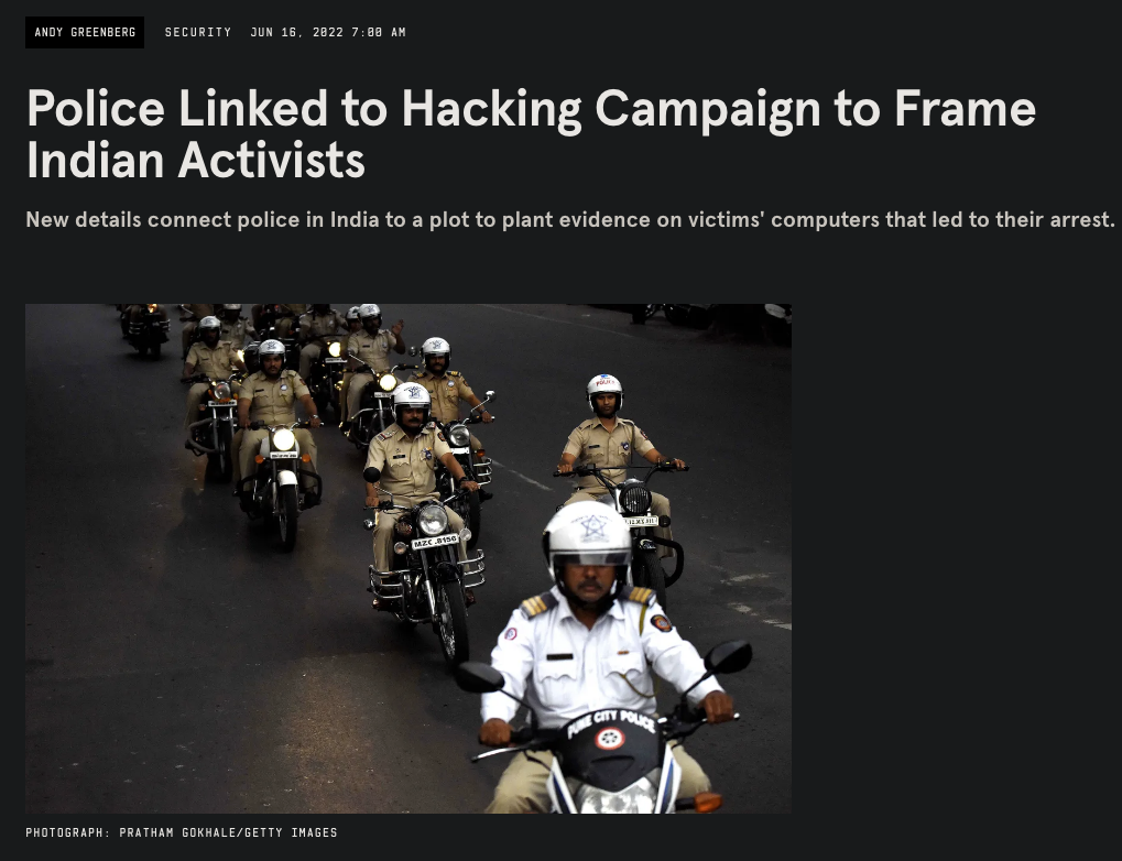 human rights defenders, academics, and lawyers across India with the objective of conducting espionage and plant incriminating digital evidence. We follow up on Arsenal Consulting’s excellent forensic investigation to describe the broader threat actor’s activities as early as 2012